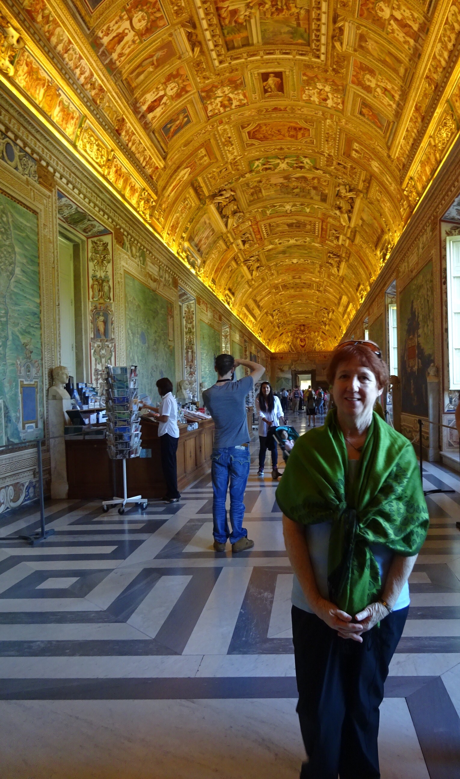 William and I started out early this morning to visit the Vatican Museum.  On the advice of our host here in Rome we had purchased our tickets in advance so once we arrived there was no waiting.  And believe me there was a lot of people there to see the Vatican.  We had the best tour guide, a young lady from Texas who was in Rome studying art.  Once we arrived on the first floor and got our first glimpse of the Museum we were amazed.  The Vatican Museum is something you will just have to see yourself to fully understand but I will share some of our favorite pictures here.  We were told that if you could spend twenty seconds in front of each masterpiece of art in the collection housed here it would take you approximately 12 years to do so.