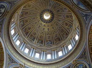 The paintings on the  dome in St. Peter’s Basilica is made all of mosaics and it is so tall you could put the Statue of Liberty inside and still not fill it.  Matter of fact, all the paintings in the Basilica were mosaics.