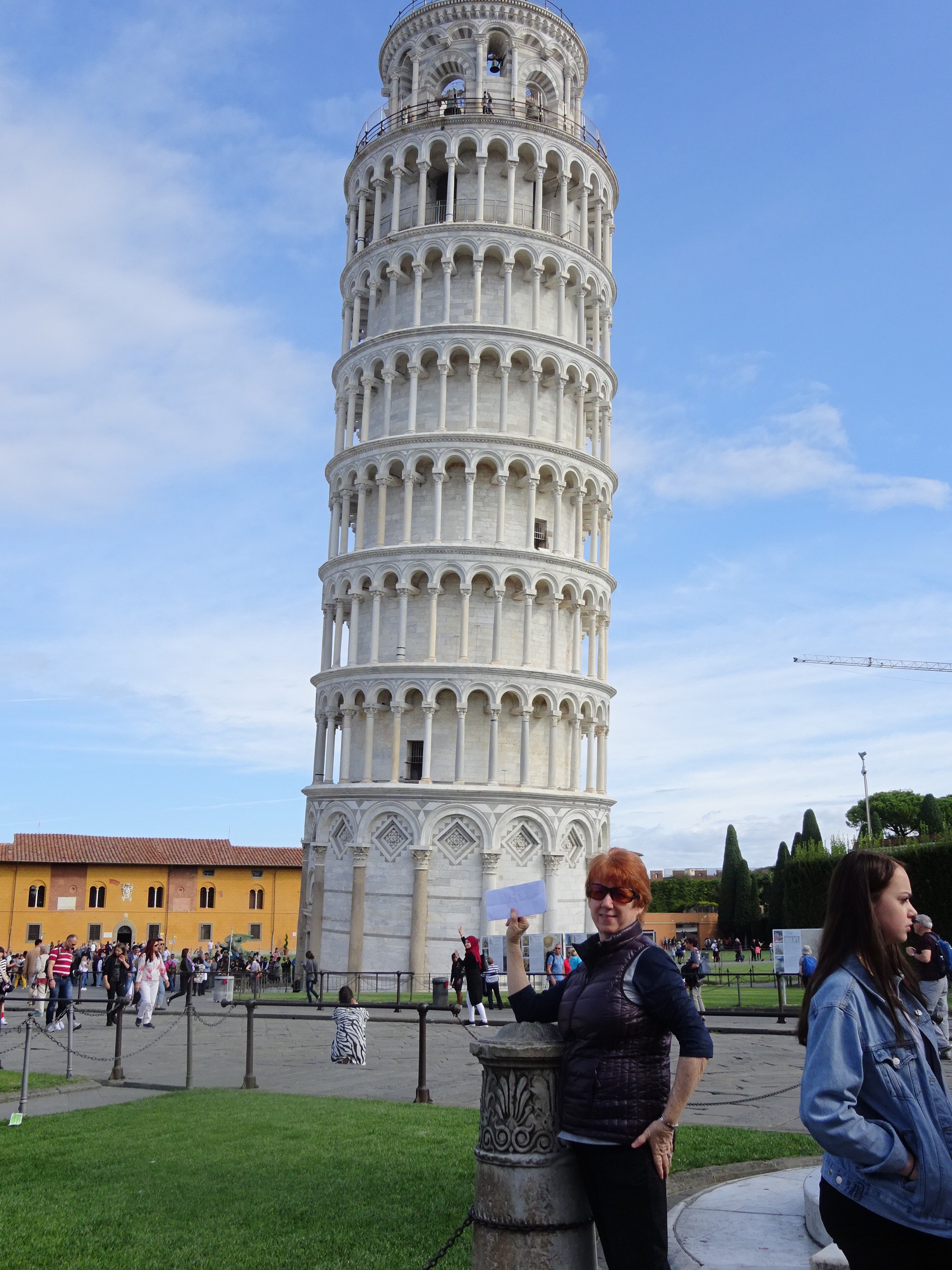 And then there is the shot with my Granddaughter’s Letter which I read at the tower. And by the way Lela, the Leaning Tower of Pisa is BIG, Really Big..It weighs 16,000 Tons and is 58 Meters High. Nothing that Superman William couldn’t hold up.