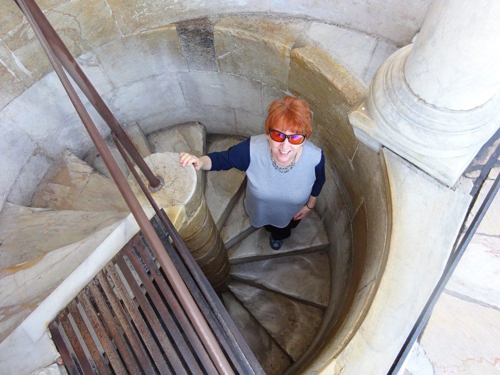 And look at the steps. You can see the indentations formed by the vast number of people who have climbed to the top of the Leaning Tower of Pisa.