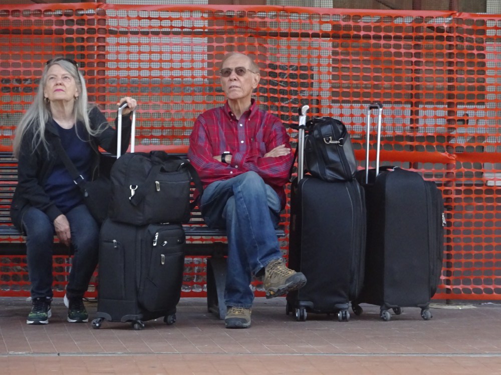 We ended our visit to Portofino with a Genova style lunch of pesto pasta and a gelato cone before heading back to the train station. While sitting and waiting for our train to arrive we did what we have been doing a lot lately – people watching. We noticed this American couple. Our question to each other was “did they leave anything at home?” Five big bags plus her large purse!