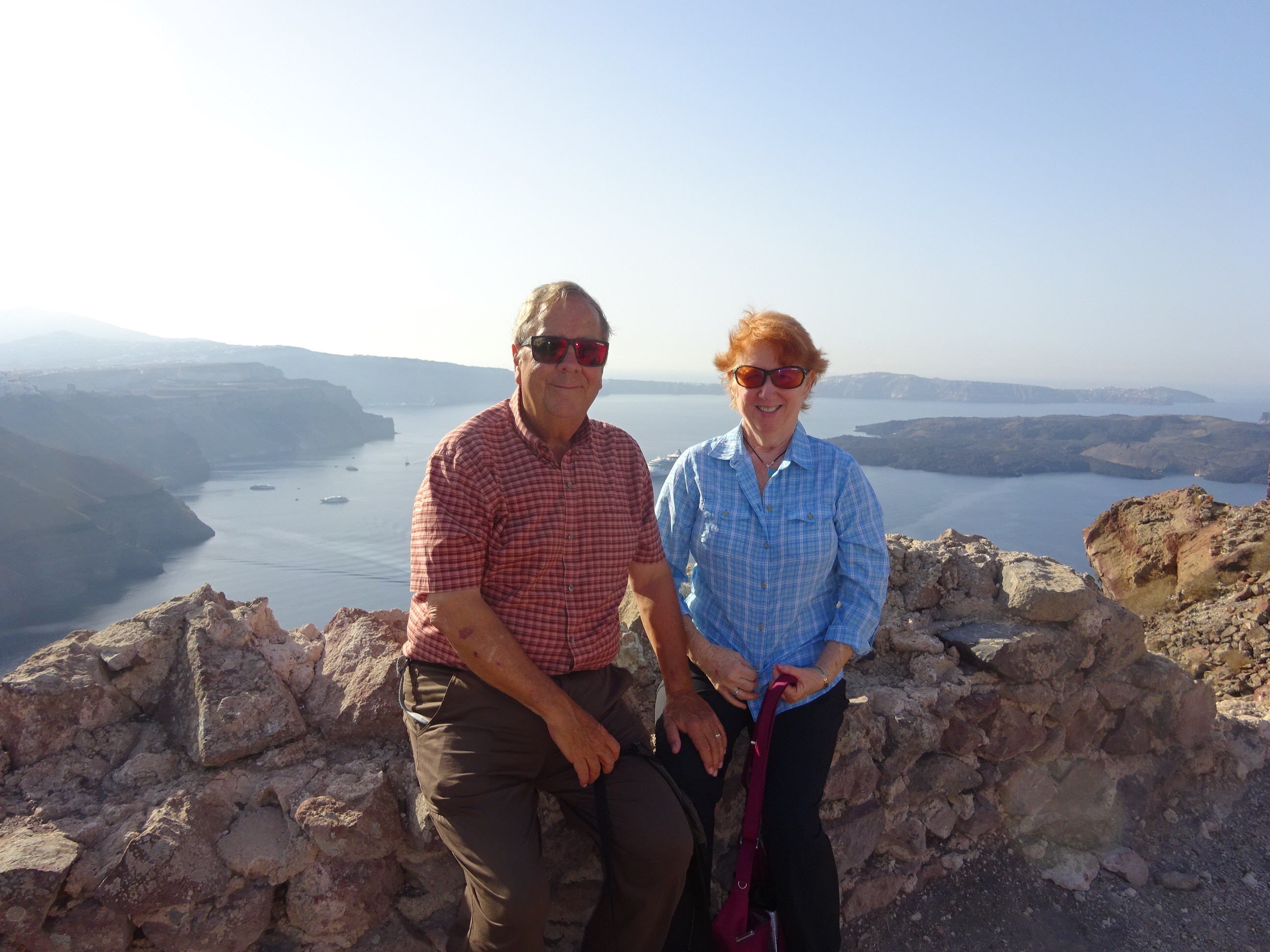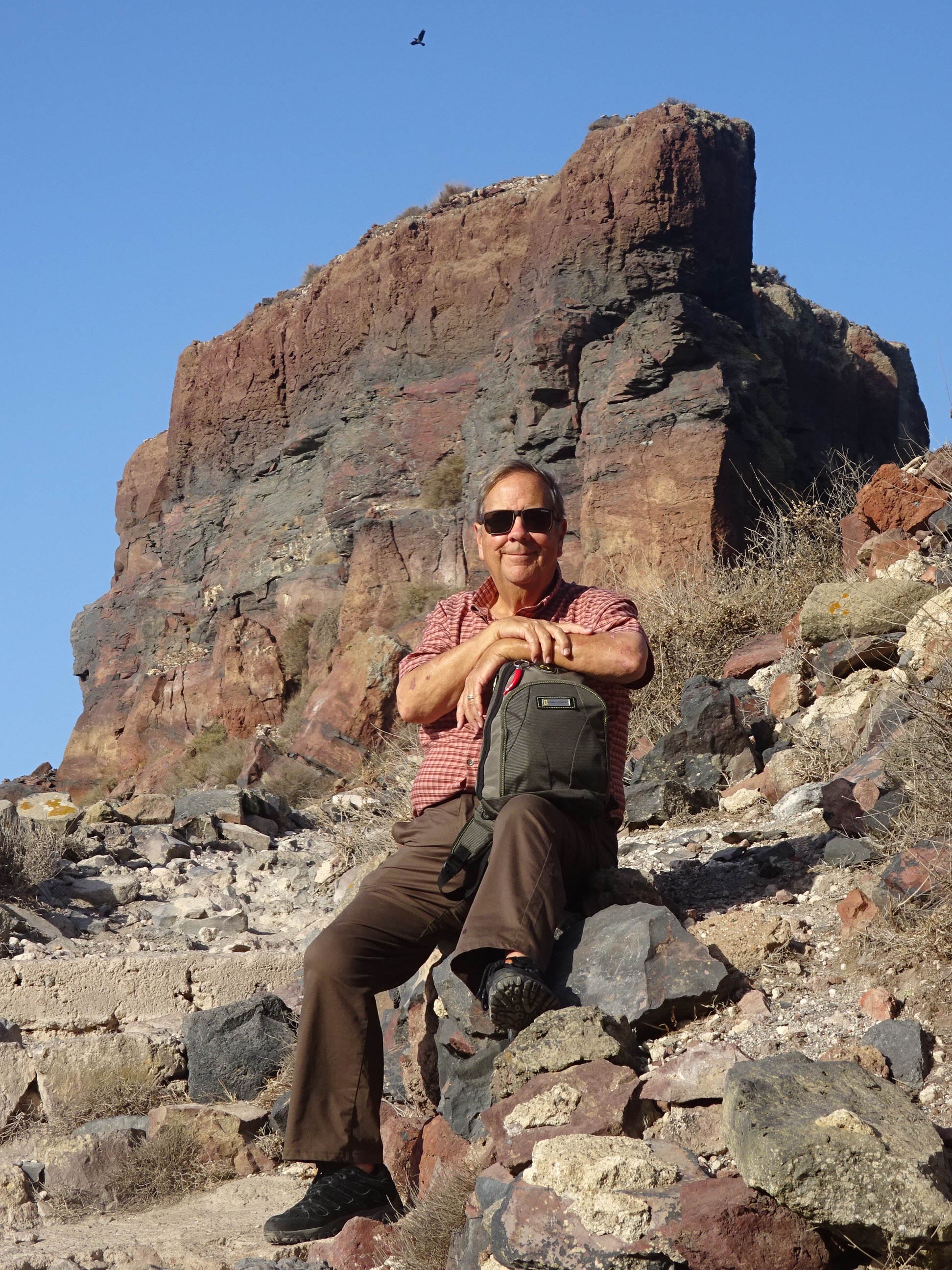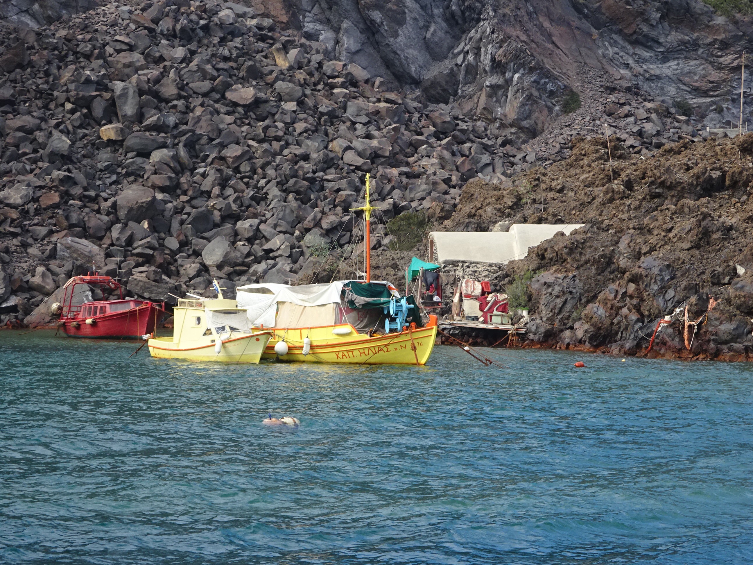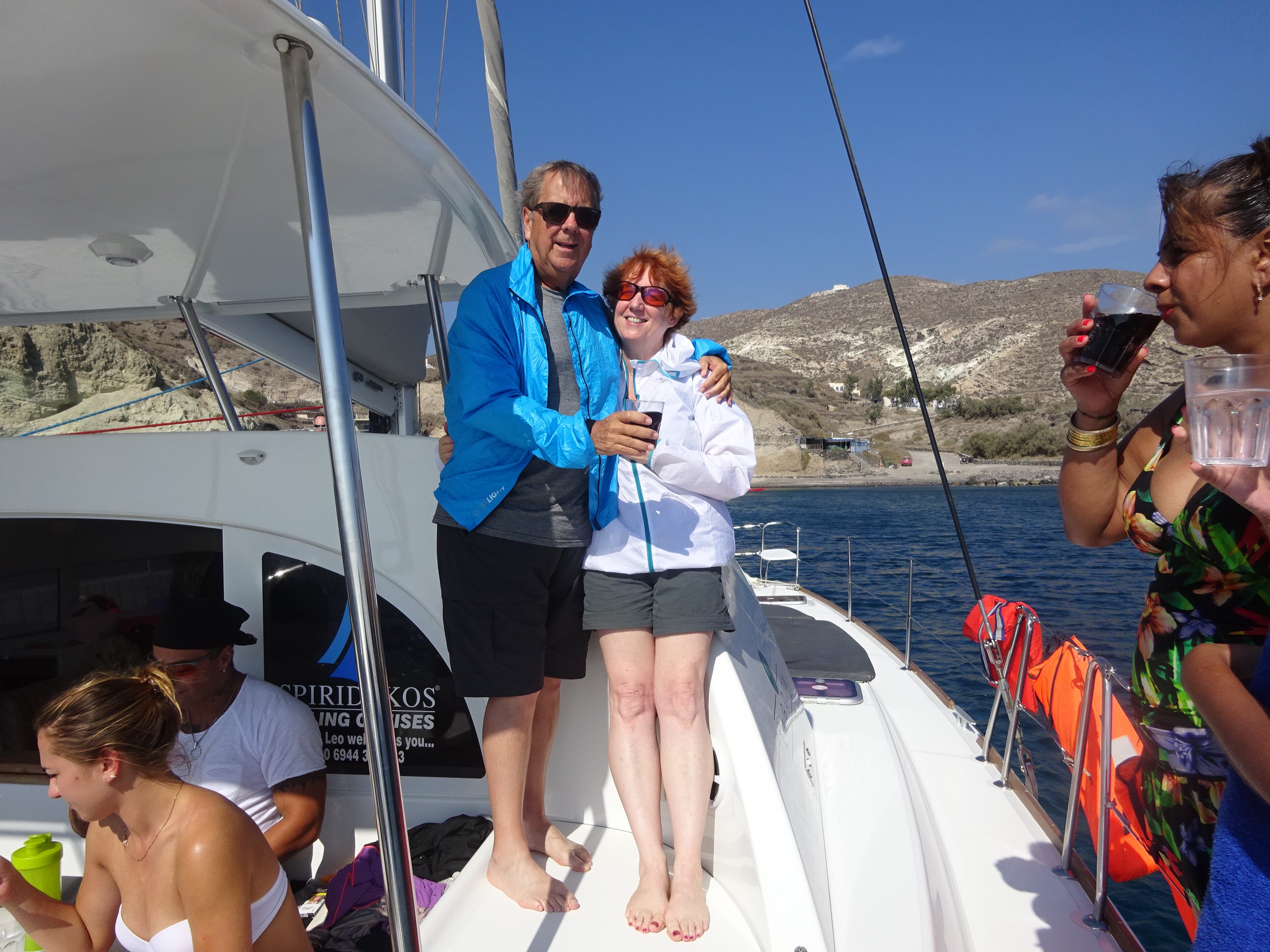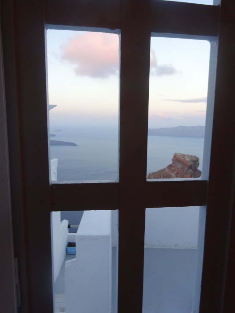 When we checked into our Villa our host Markos asked us if we might be interested in a sail boat tour around the island and immediately we said yes. Being able to see the island from a boat was right down our alley. We were told that we would sail around the island and out to the volcano. We booked the trip for the first thing on our second day here so we had all night to dream about what a great day we would have. We spent that first day exploring the island. This is the lovely view from our front door.