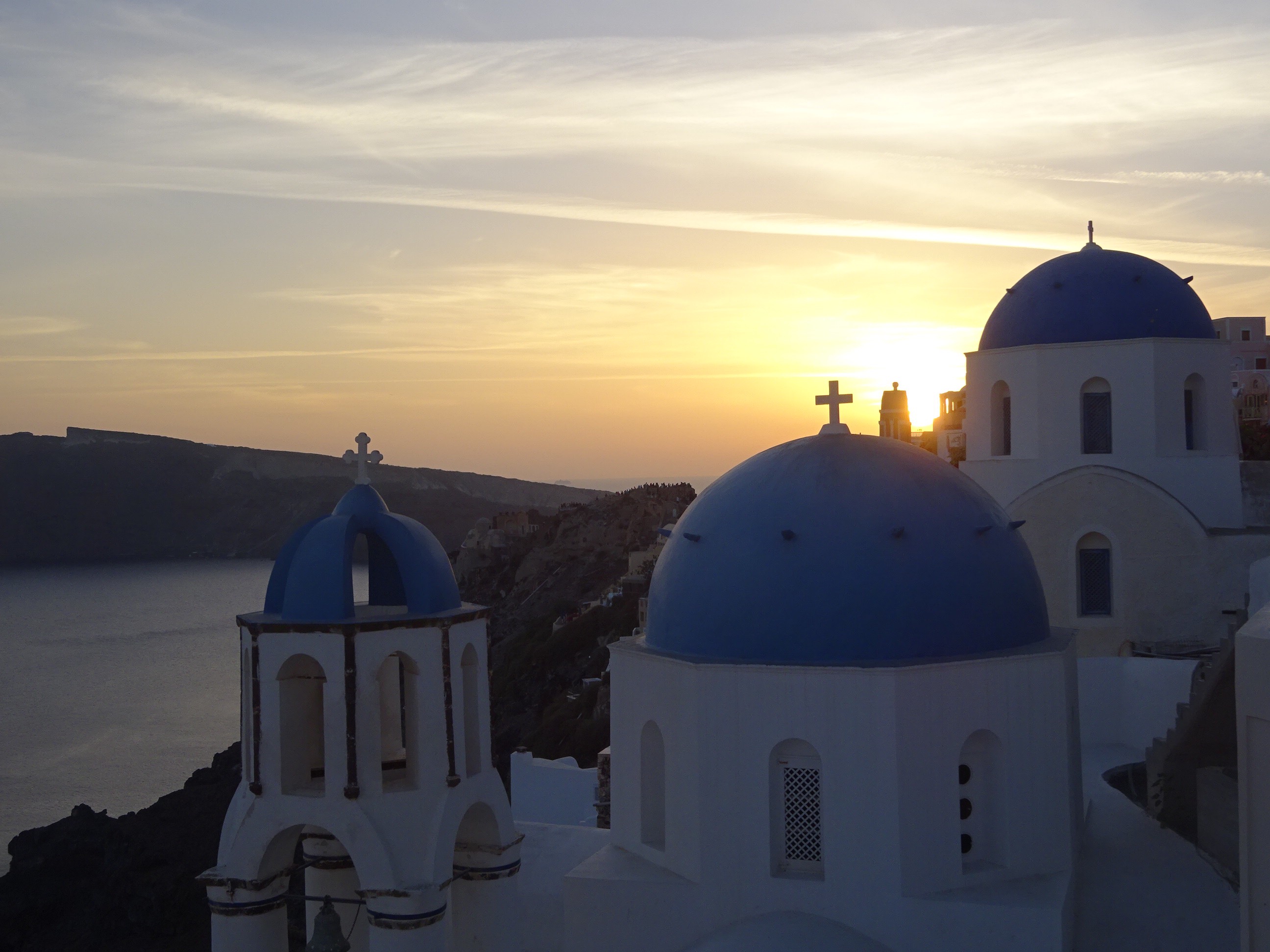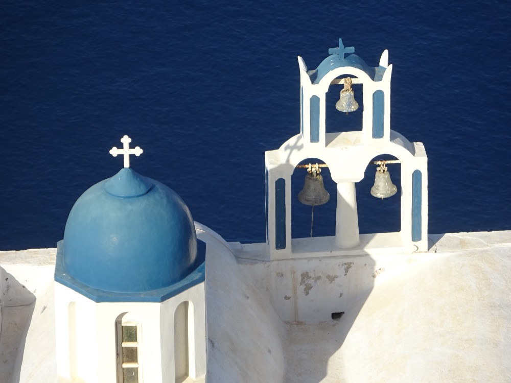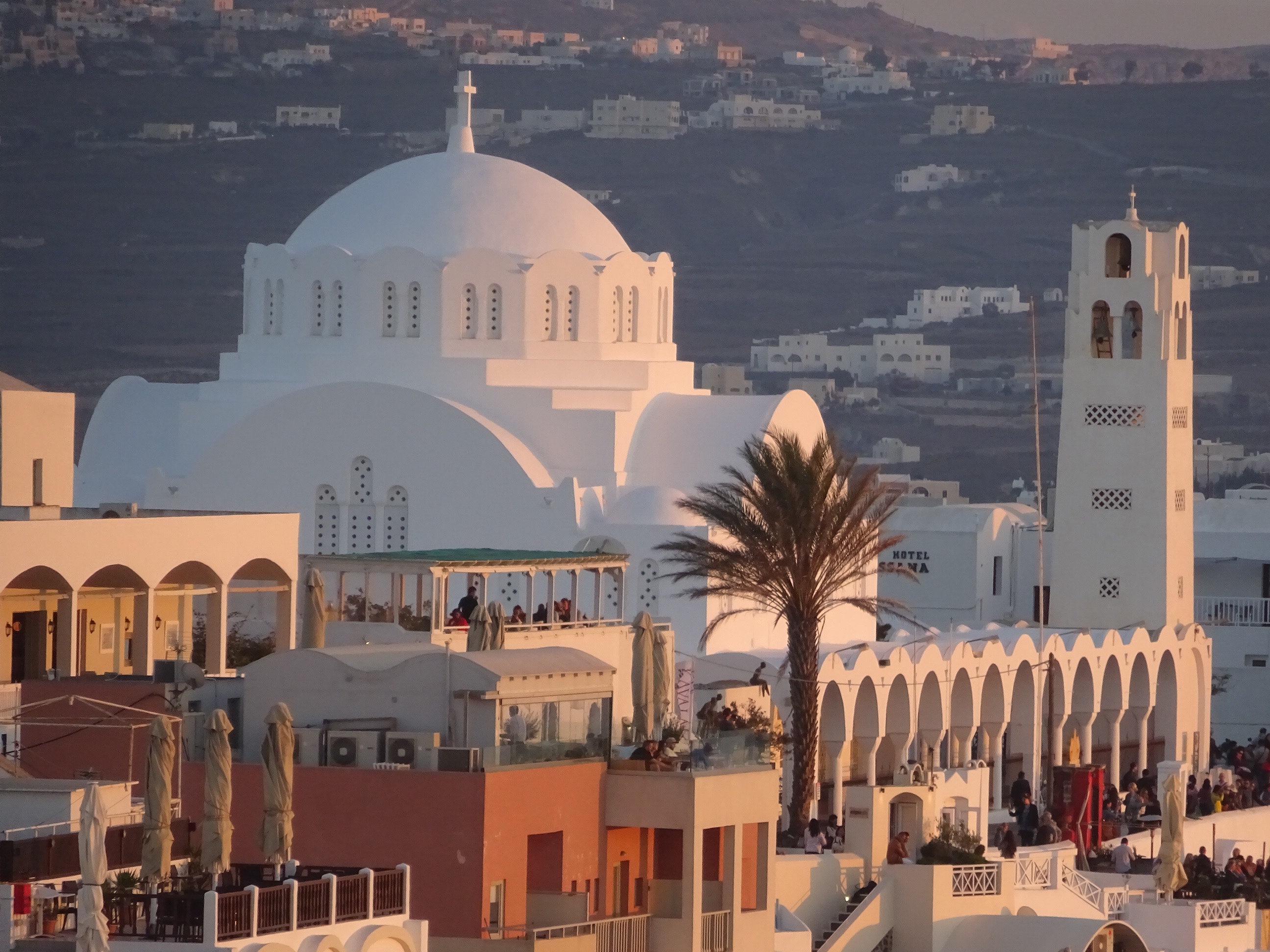Oui (pronounced EEEaah) is one of the top resort spots on the Island so after getting checked in to our room, we hopped on the bus and headed that way. What a lovey place! They say there are over 140 Churches on the island so catching a shot of one is not difficult to do.