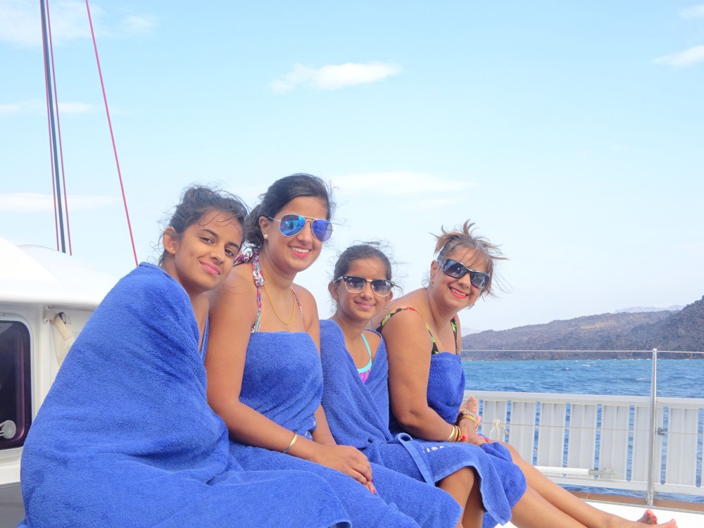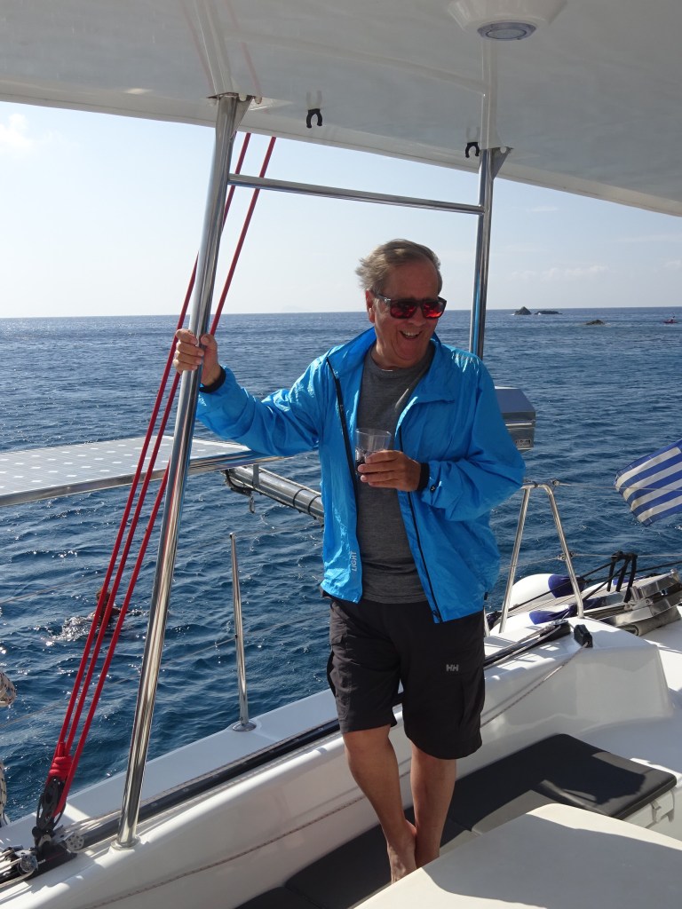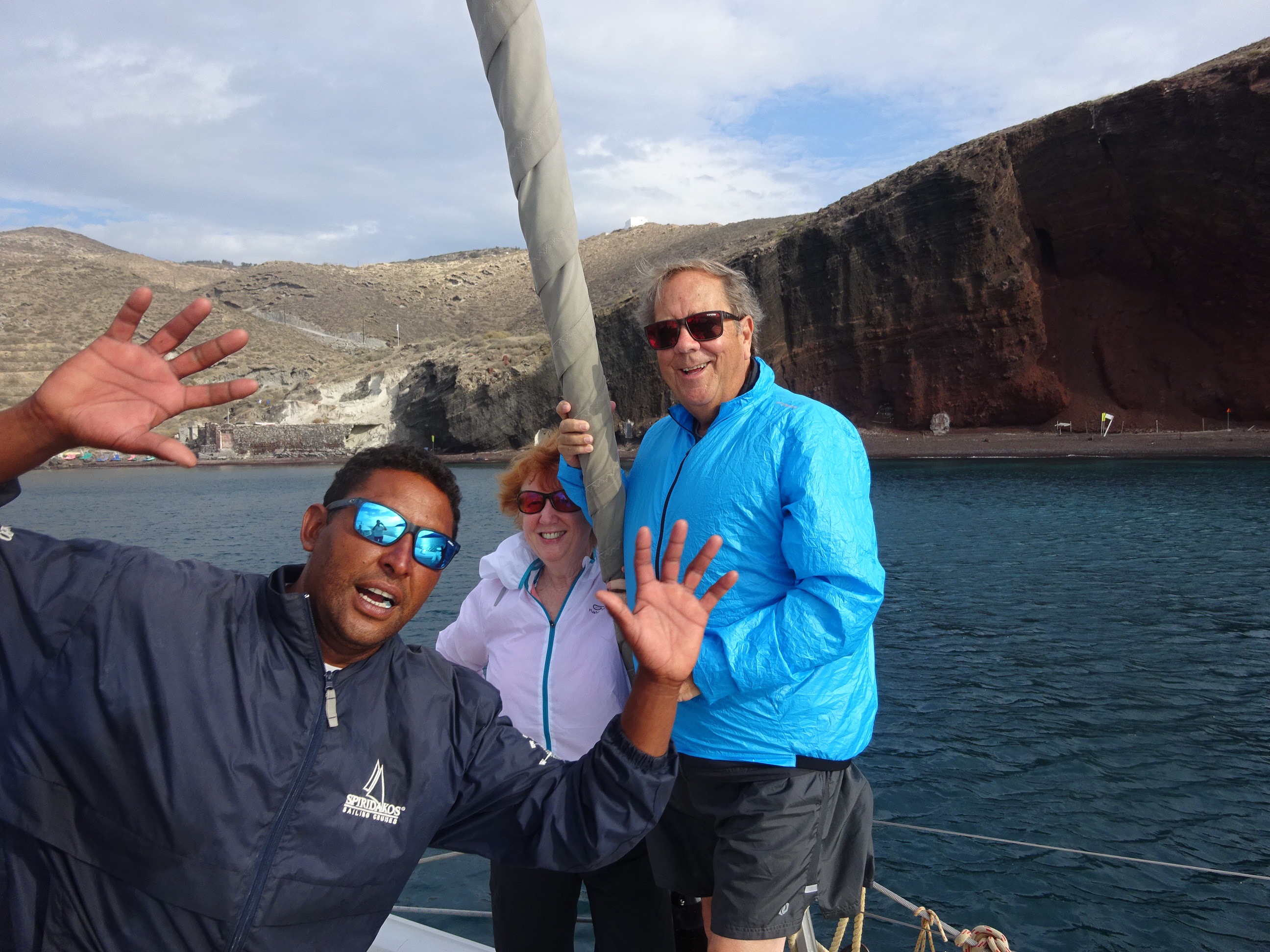 It is official now. After sailing the boat around Santorini, the crew gave William a special tee shirt making him honorary crew.