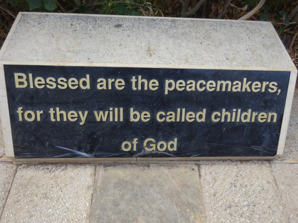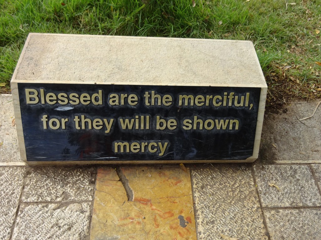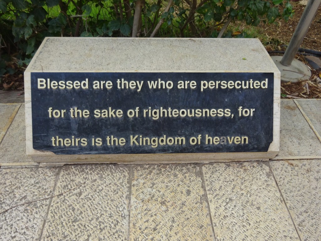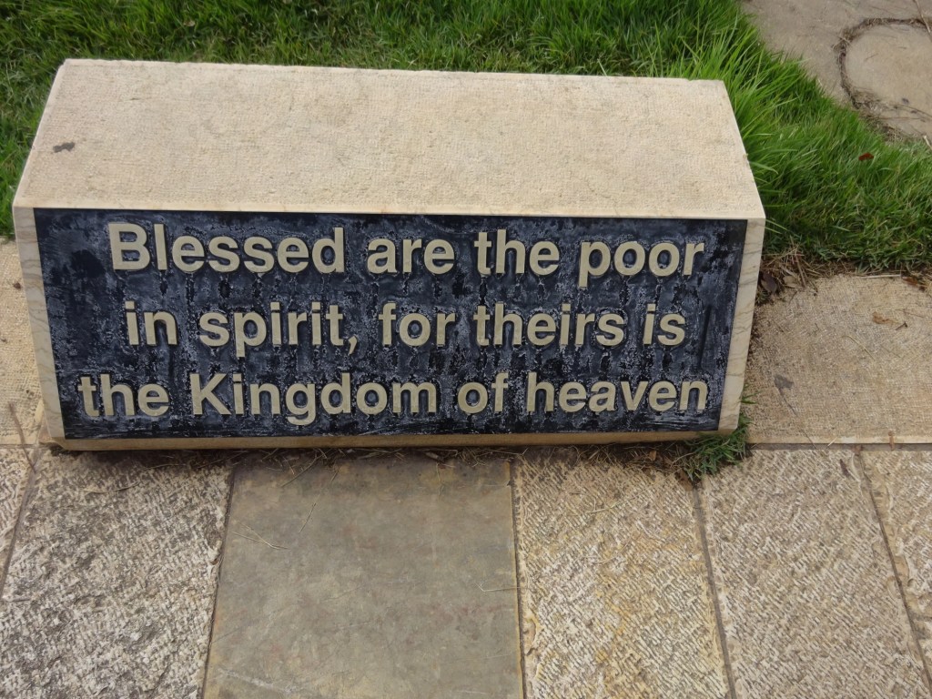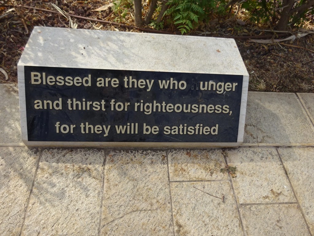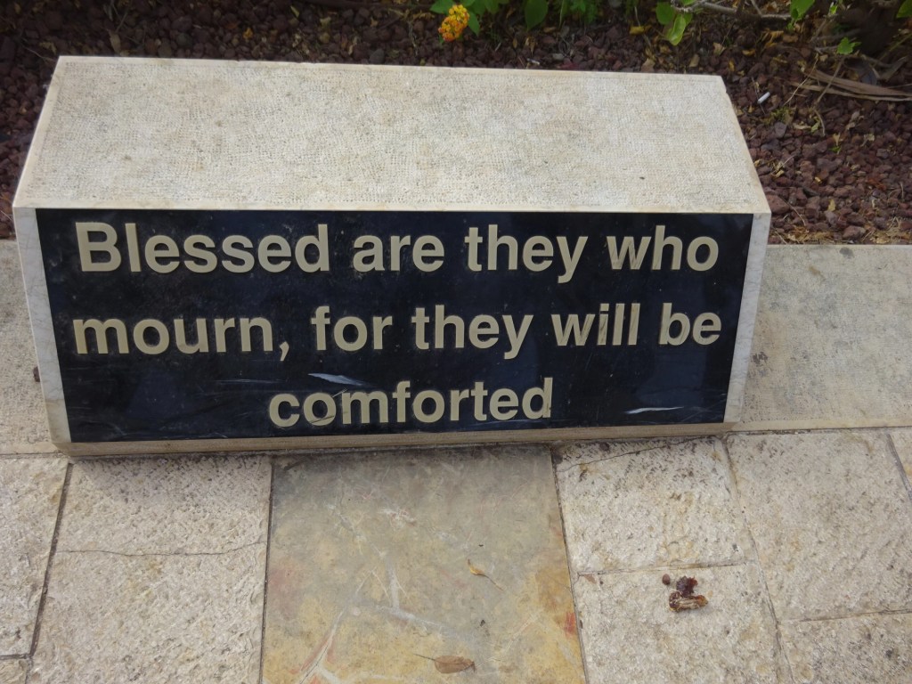 The Beatitudes were engraved on stones along the walk way to the top of the Mount. And to help us remember all eight of them I borrowed these pictures from my first trip to Israel to share with you here.