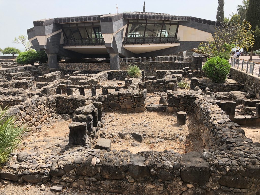 Under the huge church you can see the ruins of Peter’s house. It is believed that Jesus would have lived here during his ministry in Galilee.