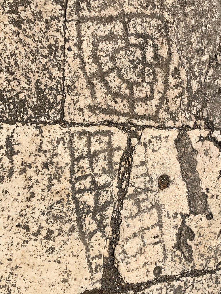 Dr. Reichman drew our attention to some carvings in the stones on the floor of the synagogue. He said it was a children’s game during the 4th century. He told us he would show us another drawing of this game but one not played by children, but by the soldiers that tortured Jesus before his crucifixion.