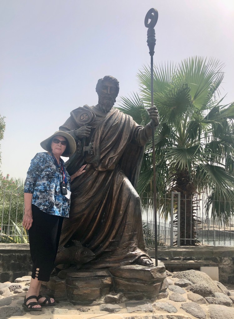 I was able to snap a photo of Sylvia as she stopped in front of the Statue of Peter. The Sea of Galilee is in the background. Capharnaum sits right on the Sea but it was also crossed by the Imperial Highway leading to Damascus making this city a very busy hub.
