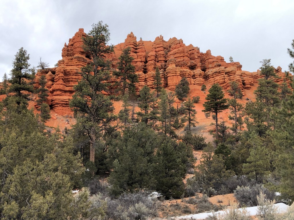 Typically one would hike down into the canyon to walk around in the hoodoos but not in mid April at almost 9000 feet in altitude after unprecedented heavy snowfall this winter. It was quite understandable that the trails would be closed because of snow and ice but still very disappointing. That is until we came upon Red Canyon as we descended in altitude continuing along the All American Road Scenic Highway 12.