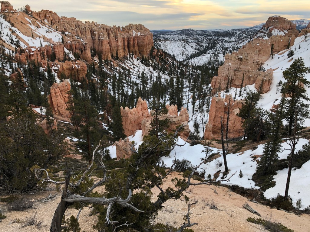 After getting settled into our room we drove all of the Scenic Drive in the park that was open. Perhaps mid April was a bit early to visit Bryce Canyon but the park was already crowded and to have waited even a few weeks I do believe tourists would have flooded the park. We do always try to avoid the crowds by getting out to see the sites early in the morning and I have always wanted to see snow on the HooDoos in Bryce so all was well.