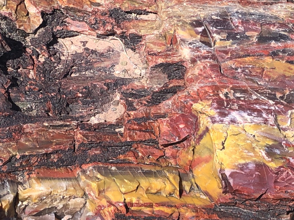 There was so much petrified wood that there were multiple signs and warnings that it was illegal to take even a small piece of the wood. I was most impressed with the colors of the petrified wood. Sometimes it even appeared that the wood had turned into glass.