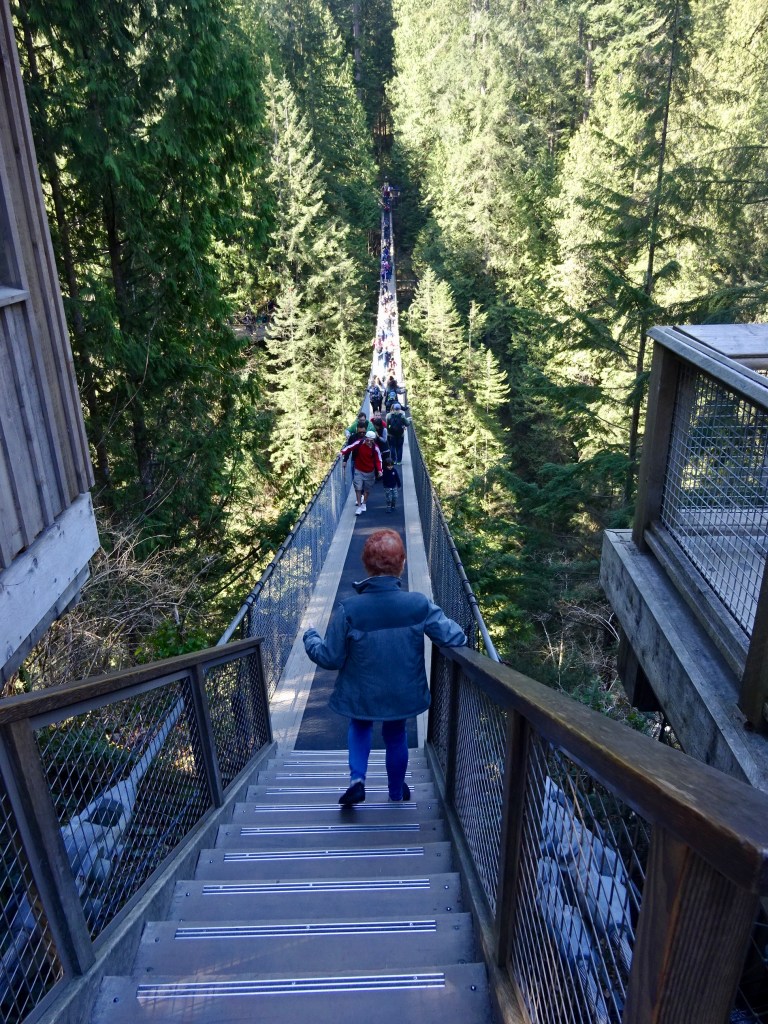It would be wrong for me to pretend that we made the trek over the bridge. None of us felt like spending $25 per person to walk across the bridge when William and I had already done the Chapilano Suspension Bridge in Vancouver BC pictured below several years ago. Yes, that is me walking down the stairs to cross this suspension bridge!