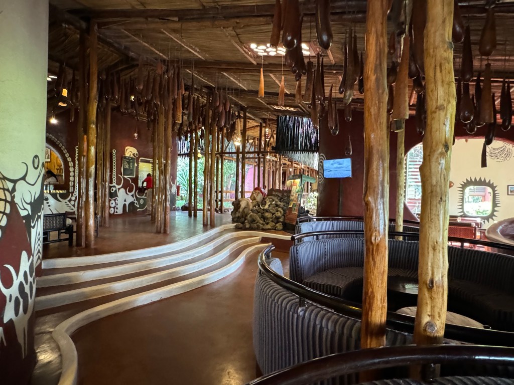After turning off this main road between Nairobi and Mombasa we drove another couple of hours with very little traffic at all. Our first stop was at a local tourist shop where we stopped to stretch our legs and take a small break. The path way to the “wash room” as they call it here in Kenya was beautifully landscaped and even had papayas growing on this tree.