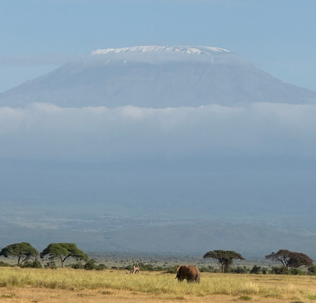 After a quick and delicious lunch we started out with Mowk on our first afternoon game drive. My desire was to get a picture of an elephant standing in front of Mount Kilimanjaro. Most of the time the mountain which is Africa’s tallest freestanding mountain at 5900 meters is hidden from sight because of the clouds. If you have traveled along with me and William you know that we generally are pretty lucky so here is my very first shot of “Killy” the shy mountain.