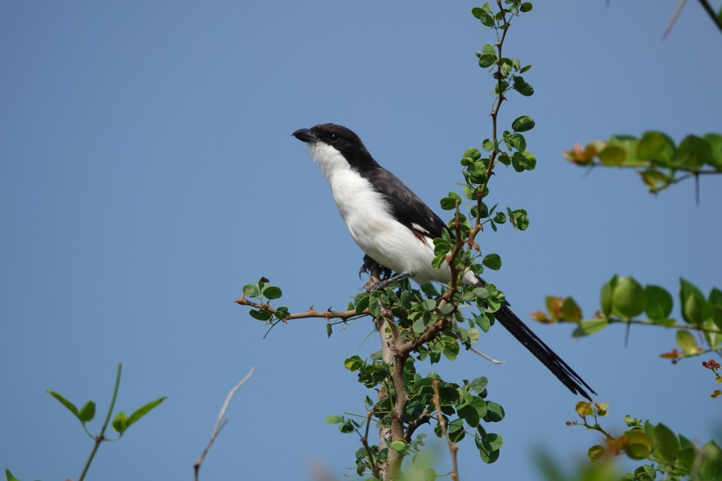 Around the pond we also saw several different birds. The one below is a grey back strike. He seemed to like the thorny bushes and acacia scrubs.